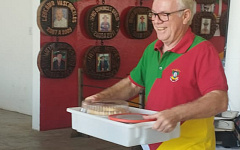 FAZENDO TUDO EM BUSCA DA PERFEIÇÃO, Jayme Huppes, patrão do CTG Nova Querência, dá uma força no Costelão de sexta-feira